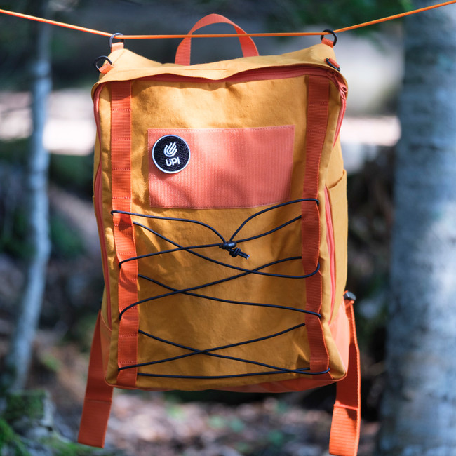 130年の歴史をもつ倉敷帆布の老舗、タケヤリの帆布を使用した丈夫なバックパック。開口部が広くどんな時でも必要なアイテムをすぐに持ち出せるようにデザインされた、UPIのオリジナルです。外ポケットやDリング、ショックコードを備え、拡張性にも優れます。視認性の高い鮮やかなエマージェンシーカラーを採用。