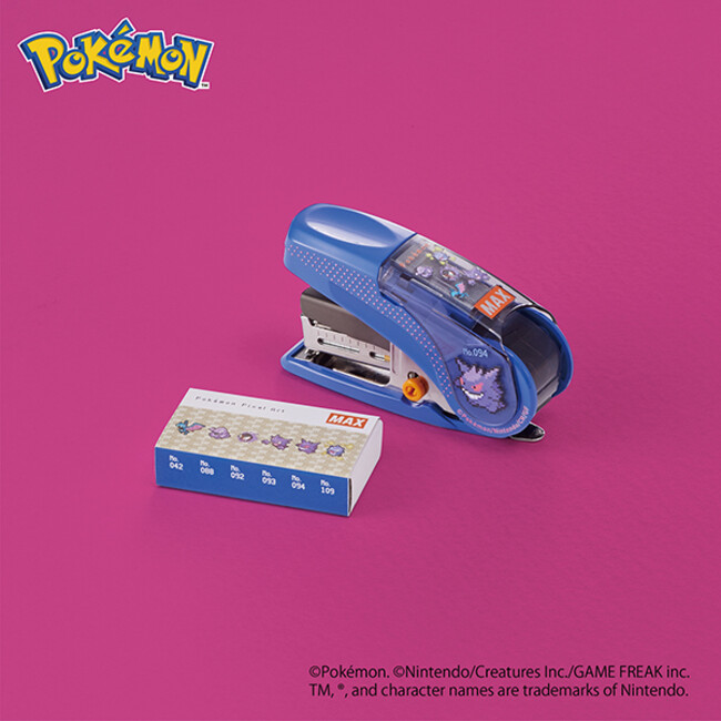 ホッチキス本体の側面には、ピカチュウ・リザードン・イーブイ・ゲンガーをデザインしました。それぞれのポケモンの上には、ポケモンずかんのずかん番号が印刷されていて、ファンの心をくすぐります。また、予備針ポケットのカバーには、ポケモンを5匹ずつ小さくデザインし、ピクセルアートならではのかわいさ・世界観を表現しました。針箱の背景には、ゲーム画面をイメージした草むらや街並みのデザインを使用し、よりゲームの世界観を楽しむことができます。ポケモンをゲットする感覚で、商品を集めたくなるデザインです。