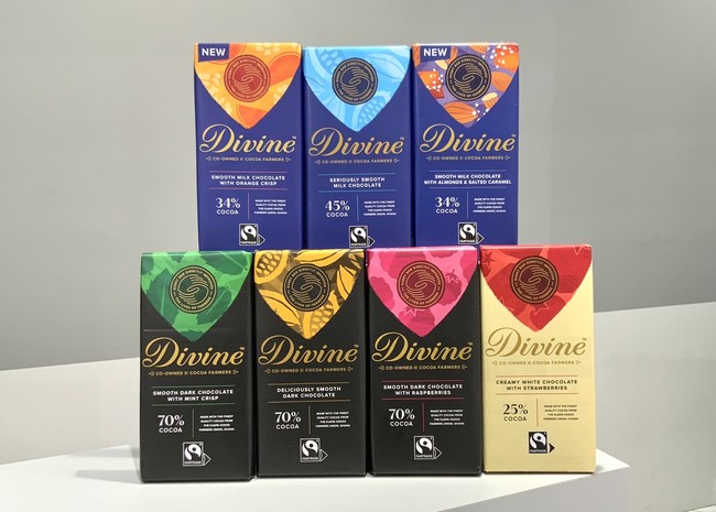 Divineはカカオ農家が経営する100%フェアトレードチョコレートカンパニーです。世界中でたくさんの人を魅惑し、愛されているチョコレートの大きなパワーによって、買う人とつくる人の両方が元気で幸せな世界にしたいという想いから生まれました。