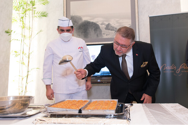 トルコ・イスタンブールより、「ナーディル・ギュル」創業家6代目CEO ムラット・ギュル氏、マスターシェフ アブドラ・イェシル氏が来日し、普段日本でなかなか見ることのできないバクラヴァ作りのデモンストレーションを、2023年9月20日(水)から阪急うめだ本店にて開催される「トルコフェア2023~もっと知りたい、トルコ~」にて毎日実演披露!