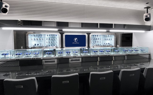 バー・オブザベーションラウンジでお酒を楽しみながら、100本の腕時計を一望できるクロノセオリー大阪は、銀座店舗と同じく宇宙船クロノセオリー号につながる別入口のハッチというコンセプトの元に開扉いたします。