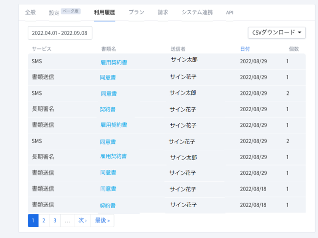 グループオーナー(管理者)の管理画面で利用履歴が一覧で閲覧可能になりました。本機能では、同じグループのユーザーが、いつどのような機能を利用したのかをご覧いただけ(※)、CSVをダウンロードいただけます。