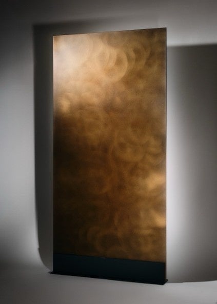 基材:アルミ樹脂複合版 仕上げ:真鍮 磨き バイブレーション 寸法:W1000xH2000xt5(15kg)