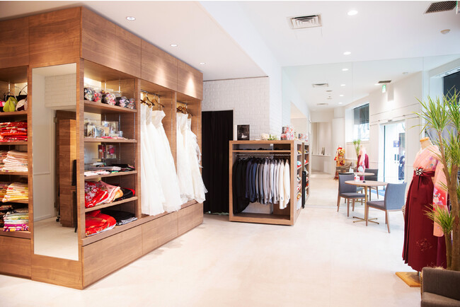 2022年2月に内装をリニューアル。衣裳室が広く生まれ変わりました。ゆったりとした空間の中、安心して衣裳選びから着替え、メイクアップまでご利用いただけます。