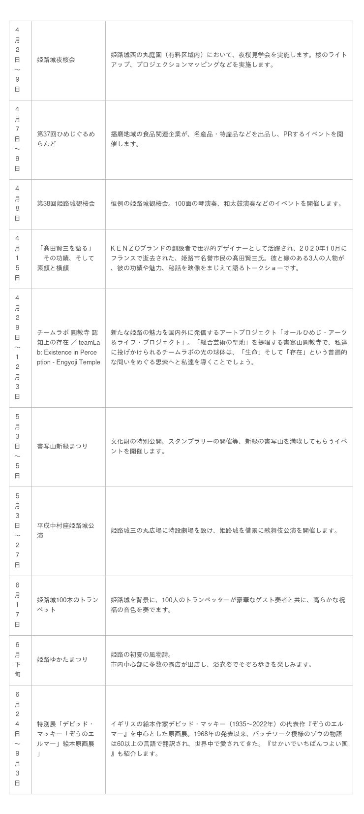 上記以外にも様々な記念事業を実施しますので、姫路城世界遺産登録30周年記念事業特設ホームページにてご確認ください。ぜひ、皆様のご来城をお待ちしております。