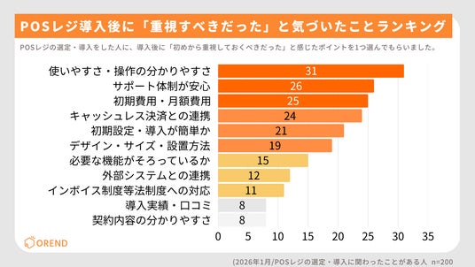 URL:POSレジの選び方を200人に調査|重視したこと・後悔した理由ランキング【OREND(オレンド)独自調査レポート】(URL:https://orend.jp/mag/a0787)