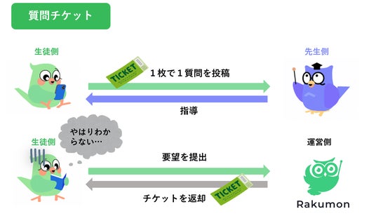 - 『質問チケット』1枚の効力は、1つの質問投稿を先生がピックアップしてから生徒様が「終了」をタップするまで有効です