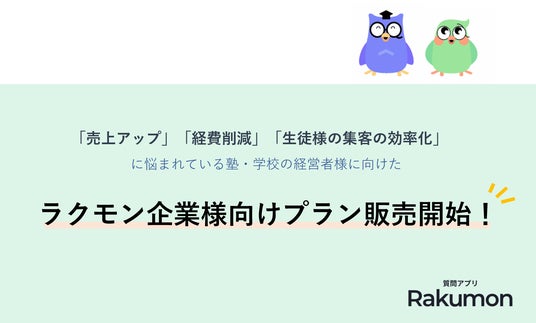 ラクモン株式会社は学習塾・個人塾・学校法人向けに『勉強質問アプリRakumon』(以下ラクモン)の格安プランを販売開始!質問サービス導入を通じて〈経営〉〈マーケティング〉〈運営・管理〉をサポートします