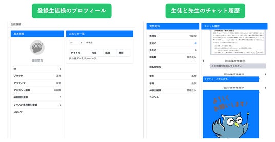ラクモン導入で生徒様の管理・質問履歴の閲覧などができます。