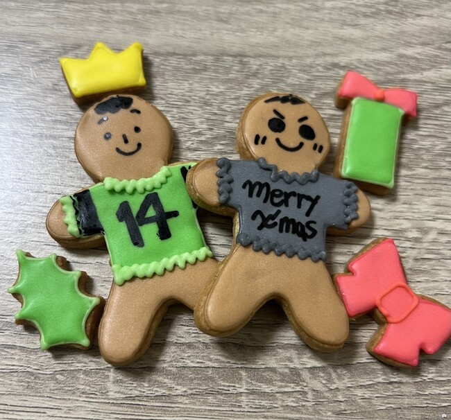 ジンジャーマンクッキー2枚、クリスマスミニクッキー5枚、フードペン