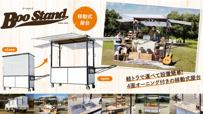 軽トラ積載用キャンピングシェル「トラベルハウス」を製造販売する株式会社自遊空間(社長 坂本竜也)は、今年2月に発売(受注開始)した移動式屋台「BooStand」(ブースタンド)の専用サイトを5月11日にオープン、合わせて全国で「BooStand」(ブースタンド)販売店を募集します。