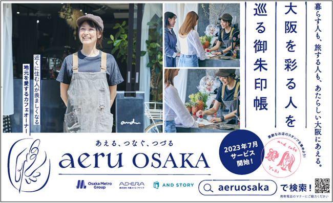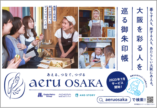 株式会社大阪メトロアドエラ(本社:大阪市西区 代表取締役:大矢 雅士)と、株式会社STORY&Co.(本社:東京都千代田区 代表取締役:細川 拓)は大阪の賑わい創出と新たな人流創出を目指して業務提携し、「aeru手帖」と「aeru体験」の2つの仕組みを軸に、大阪の街を盛り上げる新サービス「aeruOsaka(あえるおおさか)」を開始します。大阪の街の代表的な魅力である“人”(想いやストーリーやキャラクター)に特化したメディアと、実際に人と出会い、交流し、体験できるツールやマッチングプラットフォームの提供を通じて、大阪の街に新たな出会いと発見、楽しみを提案。大阪のひとに出会い、交流する旅をサポートし、大阪の活性化へ貢献します(URL:https://aeruosaka.com/)
