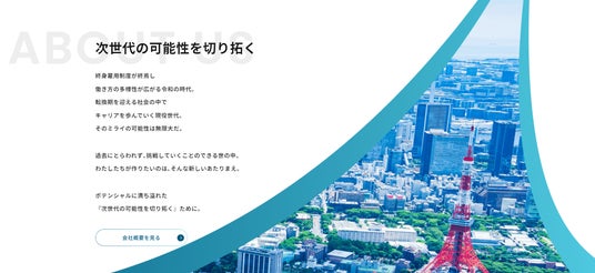 新しいコーポレートサイトでは、「次世代の先端を疾走せよ。」というコンセプトの下、”次世代の可能性を切り拓く”というミッションを掲げる当社の力強さや事業成長のスピード感が伝わるよう、入念にメインビジュアルやタイポグラフィをデザインしました。