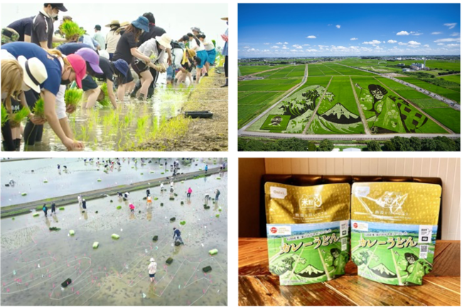 田んぼアートとは、色の異なる稲で水田に巨大な絵を描くアートのこと。埼玉県北部にある行田市の田んぼアートはギネス世界記録™️にも認定され、全国的にも有名です。14年目の2021年度は「Edible Art(=食べられる芸術)プロジェクト」をテーマに、収穫米を使って災害用の備蓄食品ライスヌードルが誕生しました(開発:株式会社エムエスディ)。