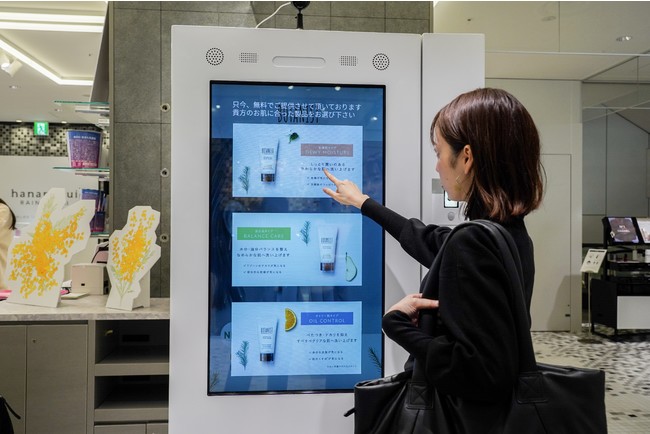 カエルサイネージは、非対面・非接触でマーケティングとデータアナリシスができる「物品排出機能がついたサイネージメディア」、リモートセンシング・デジタルサイネージ・自動販売機の技術を集結したマーケティングサービスです。セキュリティカメラのデータとCMSサーバーの活用により、個人情報保護法に抵触しないまま消費者のメディアに対するレスポンスをデータ化することが可能です。このコンパクトな機体と大きなディスプレイを活用し、これまでは考えられなかった場所でオフライン上での「出逢いのキカイ」を創出することができるようになりました。
