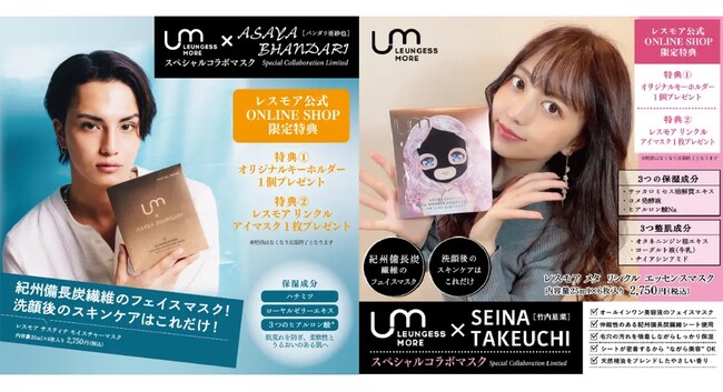 弊社のプロデュースする「LM×バンダリ亜砂也」「LM×竹内星菜」の特別コラボ企画の再販売スタート!!今なら必ずもらえる!レスモア公式サイトからの購入で限定オリジナルキーホルダーをプレゼント中!