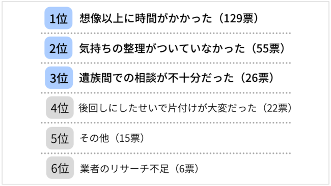 次に「気持ちの整理がついていなかった」「遺族間での相談が不十分だった」と続きます。