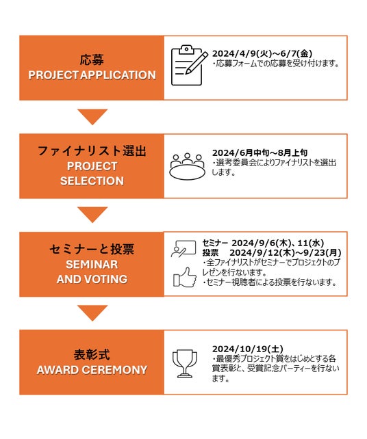 これまでの開催では、業種業態を問わず様々な素晴らしいプロジェクトにご応募いただいており、今回も多数の団体・企業の皆さまからのプロジェクトのご応募をお待ちしています。