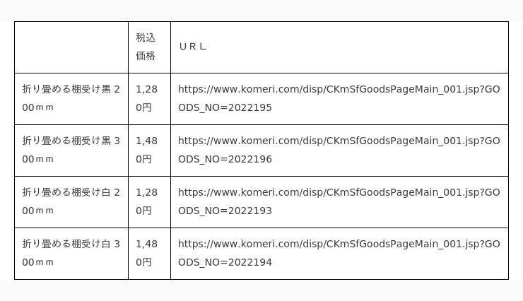 ホームセンターの「コメリパワー」や「コメリハード&グリーン」を通し地域のライフラインとして、地元のプロを応援する株式会社コメリ(所在地:新潟県 新潟市、代表取締役社長:捧 雄一郎)は、2021年8月10日(火)より、「折り畳める棚受け」をオンラインショッピングサイト「コメリドットコム」にて先行販売を開始いたします。※店舗には9月上旬ごろより順次導入となります。