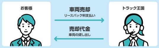対象は年式・形状を問わず、すべての商用車(ただし軽自動車を除く)です。当社が顧客からお客様の車両を査定・買い取りをし、お客様に買取代金を全額お支払いいたします。買取後、そのままお客様にリースバックし、当社にリース料をお支払い頂きます。リースバック契約終了時点では、車両返却か買戻しかお選び頂けます。対象地域は全国です。