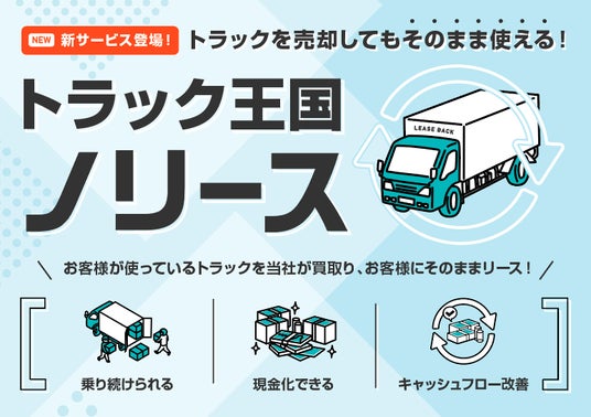Nentrys株式会社(本社:東京都渋谷区、代表取締役:津島 一夫)は、2024年3月13日より、お客様がご使用中のトラックを買取り、そのままリースバックするサービス「トラック王国ノリース」を新たに開始することをお知らせします。乗ったままトラックを現金化することにより、物流・建設・製造業界のお客様の資金ニーズに応えます。