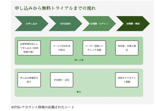 利用に必要な項目に加えて導入検討状況や予算などを入力していただき、フォームを送信していただきます。弊社にて内容を確認させていただき、アカウントを発行させていただきます。アカウントのログイン情報などはメールでお知らせいたします。