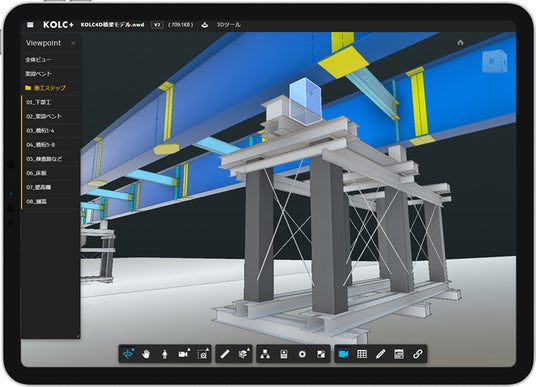 株式会社コルク(東京都豊島区、代表取締役:堤正雄)は、BIM/CIM共有クラウド「KOLC+(コルクプラス)」にて、Autodesk Navisworks(R) のビューポイントで作成された施工ステップをクラウド上で共有できるサービスを開始しました。これにより、タブレット端末(iPadなど)で Navisworks の施工ステップをそのまま現場に持ち出すことができるようになりました。