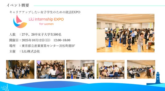 実際に「今回のワークショップを通じて、自分の正直な気持ちと向き合うことができた」「これからの業界選定において自分の得意不得意を把握できた」「就活に対して前向きになれた」「就活が楽しみになった」という学生の声や、ご出展いただいた企業様からも次回を期待する声を多くいただいております。そこで、早速、今回はさらに多くの女子学生と企業様が集まる場を提供すべく、2025年10月12日(日)に都内会場にて「第2回 LiLi Internship EXPO for women」の開催が決定しました。詳細は決まり次第、弊社の公式HPや公式SNSにてお知らせしますので、今後ともご注目いただけますようお願い申し上げます。