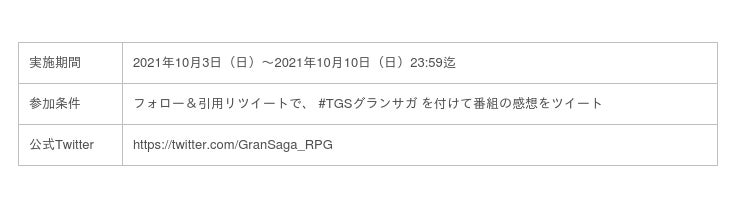 グランサガ公式Twitterでは、TGS2021公式番組出展を記念して『TGS2021大感謝キャンペーン』を開始いたしました。