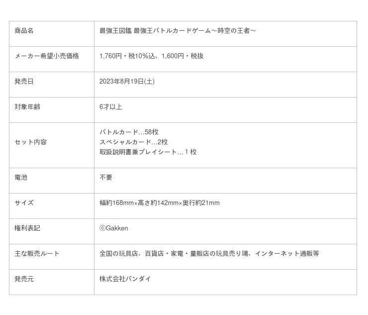 公式カードゲーム「最強王バトルカードゲーム」より、「最強王図鑑 最強王バトルカードゲーム~時空の王者~」を2023年8月19日(土)に発売いたします。