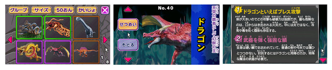 キャラクターの並べ替えができたり、生態について詳しくなれます。