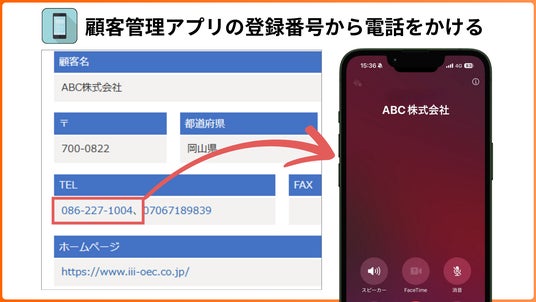 電話番号リンク機能テキスト項目に登録された電話番号がリンク化され、スマートフォンから直接電話をかけられるようになるため、モバイル環境での操作性が大幅に向上します。