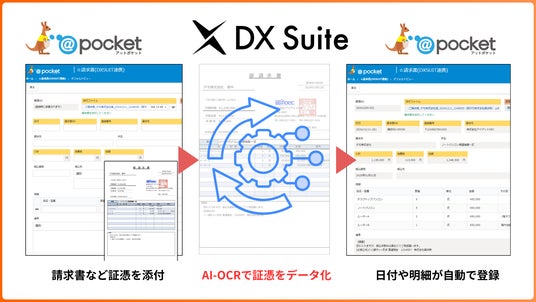 DX Suite連携(AI-OCR対応)添付したPDFファイルからDX Suiteを利用して必要な項目を抽出し、@pocketのデータフィールドに自動登録できるようになります。