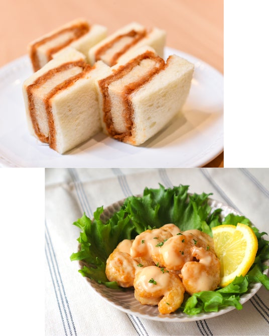 ディーツカツのサンドイッチ(上)と、ディーツエビタイプのエビマヨ風(下)
