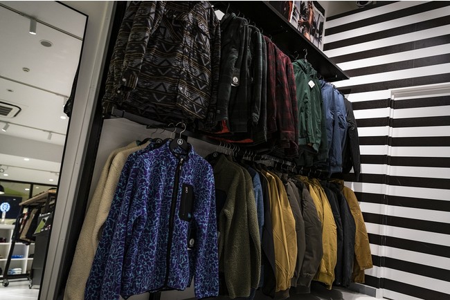 店内には、メンズ、ウィメンズ、キッズ商品がラインナップ。