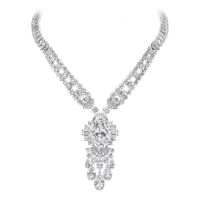 TWICE SANAが纏ったトータル150カラットを誇る世界最高峰のハイジュエリー ダイヤモンド ネックレスがフォーカスするのは 、 大粒かつこの上なく希少な 50 カラット D カラー フローレス (完全無色無傷) のオーバルシェイプダイヤモンド。その周囲で美しい煌めきを放つトータル 100 カラットを誇るペアシェイプ 、 エメラルドカット、オーバル 、ラウンド、バゲットカットを施されたダイヤモンドと共に胸元で息をのむような美しいハーモニーを奏でます。この美しいジュエリーはロンドンのメイフェアに位置するグラフのハイジュエリー専門のワークショップで、グラフが誇るハンドクラフトの高い技術力とコンテンポラリーなデザイン力が見事に融合しクリエイトされました。ネックレスの中央では、モダンなエメラルドカット ダイヤモンドで創られたグラフィカルなセンターフレームが、外に向かって広がるカリブレカットダイヤモンドが施された枠と相まって、まるで枠の上にセンターストーンが浮いているかのように、極上の輝きを放つオーバルシェイプダイヤモンドの美しさを引き立てています。また、その下にはオーバルシェイプやペアシェイプで構成された数層からなるフリンジが美しく煌めき、荘厳な存在感を放ちます。TWICE SANAは2023年7月よりグラフ初のジャパンアンバサダーに就任し、日本で独占的にスタートした魅力溢れる様々なビジュアルを使用した広告キャンペーン内でも、グラフの世界観を体現するこの上ない美しさを披露しています。