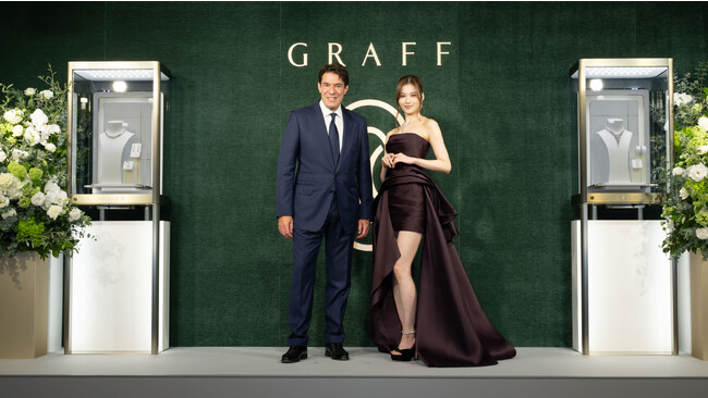 2023年11月10日(金)、21世紀のキング オブ ダイヤモンドと評され、歴史に名を残す極上のダイヤモンドの数々を生み出し続けているグラフの銀座本店2周年を祝し、トータル150ctを誇る世界最高峰のハイジュエリー ダイヤモンド ネックレスを纏ったグラフのジャパンアンバサダーTWICE SANAが祝福に駆けつけました。