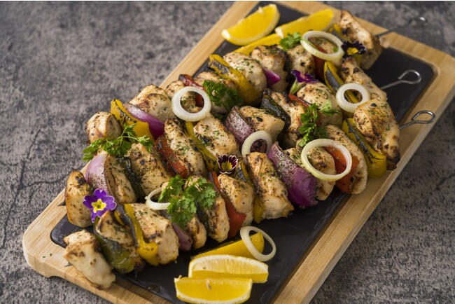 「レバノン風チキンの串焼き」や「ペルシャ風ケバブ」、サウジアラビアでポピュラーな米料理をアレンジした「ラム・カブサ」に加え、シェフがゲストの目の前でカービングサービスする「チキンシュワルマ」など、エキゾチックなスパイスを利かせた各種肉料理は「ガーリックヨーグルトソース」や「ピーナッツソース」、「ストロベリーミニョネットソース」など16種類ものオリジナルソースと共にご賞味いただけます。