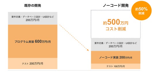 ■ノーコード開発でコストと期間を50%以上短縮