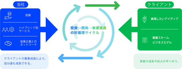 今後は、より積極的にスタートアップ企業への出資と開発リソースの提供を行い、事業拡大の支援を行うとともに、支援先企業のネットワークを活用した企業間の協業体制も強化していくことで、各企業における包括的でスピーディな事業成長とDX推進を促します。また、日本のスタートアップの成長の課題となっている、「デジタル化・DX化」の解決を当社のリソースを用いて行っていくことで、国内の経済成長への貢献を目指します。