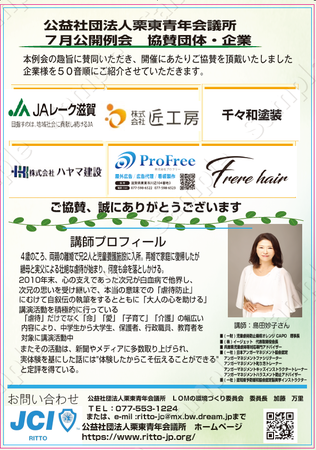 ・公益社団法人栗東青年会議所は7月14日(木)に一般財団法人 児童虐待防止機構 オレンジCAPO