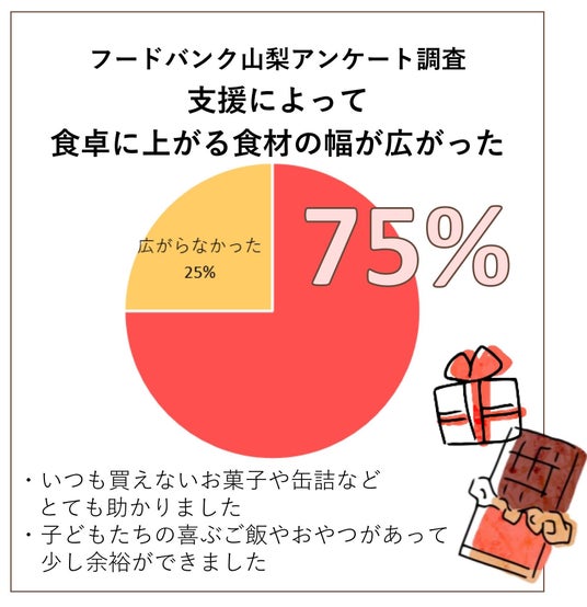 生活に必要な食品だけでなくお菓子などのし好品を送ることは、食卓に楽しさをもたらす「心の栄養」になっています。