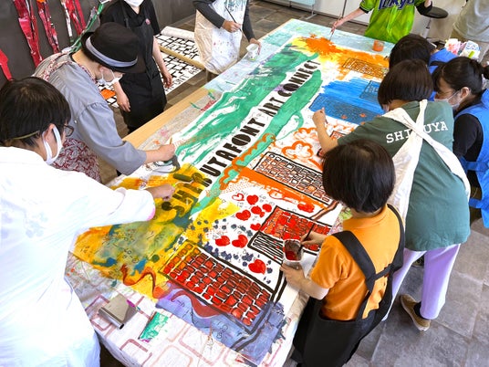 渋谷区内にくらし・はたらく障がいのある人が描いた文字や絵をもとに、専門学校桑沢デザイン研究所の学生が、彼らと協働しながらフォントやパターンデータを制作、それらを渋谷区公認のパブリックデータ「シブヤフォント」として誰でも利用できるよう公式サイトで公開しています。売上の一部は渋谷区内の障がい者支援事業所に還元しています。“共に制作する” ”気軽に使える” ”商品に採用する”という誰でも参加できるデータの特性を活かして、渋谷区のダイバーシティ&インクルージョンの理念を広げています。