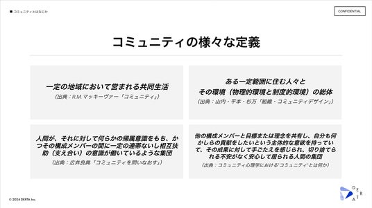 Update Localをミッションに掲げる株式会社DERTA(本社:新潟県新潟市、代表取締役CEO:坂井俊 以下、DERTA)は、本日2024年5月14日、コミュニティに関する知見をまとめた「コミュニティデザインの実践 ~コミュニティの考察~コミュニティマネジメントの実践ナレッジまで~」を公開します。