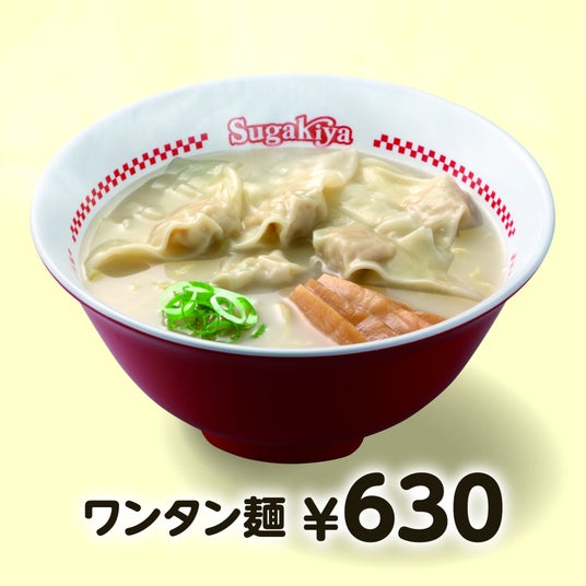 ■ワンタン麺 ¥630冬に一部店舗限定で販売したワンタン麺をついに全店舗で販売いたします。つるんとした食感であっさりとした鶏肉の旨みを感じるチキンワンタンはスガキヤのスープとも相性バッチリです。