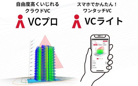 「VCプロ」は、設計士のリソース不足という課題をAIを活用して解決するもので、ブラウザ上で動き、敷地設定や建築物の与条件などを数分ほどで設定し、図面作成ボタンをクリックするとわずか15秒ほどでマンションのボリュームプランのたたき台をアウトプットし、消化容積率の他、容対レンタブル比や工対レンタブル比も概算できます。平面図・立面図・日影図・天空率チェックまで可能となっております。