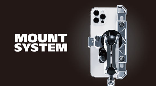 高強度バイク用デバイスホルダー「MOUNT SYSTEM」。 タフで、強く、美しい。研ぎ澄まされた機能美を持つ、「アルミ削り出し」バイク専用デバイスホルダー。