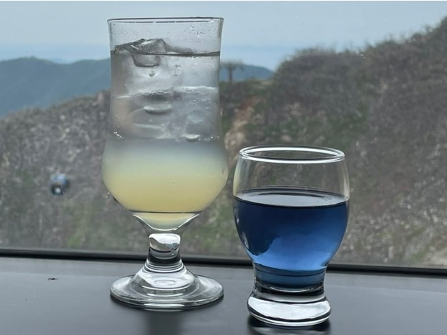 3.商品説明 梅雨の時期に、さっぱりとしたレモンソーダで気分も爽快に。半分飲んで、バタフライピーを 入れると、あじさいをイメージした鮮やかな色に変化します。箱根のあじさいとともに「大涌谷 駅食堂」のテーブルに咲く「あじさいソーダ」をお楽しみください。