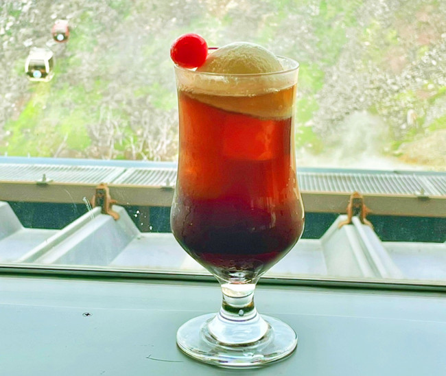 3.商品説明 大涌谷駅前の「谷のテラス大涌谷」からの雄大な景色が赤く染まる、夕焼けのグラデーションをカシスシロップと炭酸にアイスクリームをのせ表現した、色鮮やかなクリームソーダです。