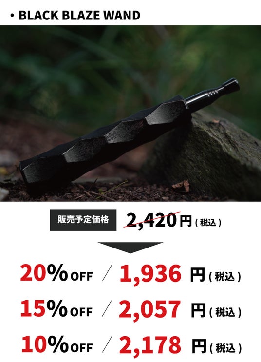 黒いキャンプギアを追求するアウトドアブランドBlackishGearは応援購入サービスMakuakeにて「BLACK BLAZE WAND (ブラックブレイズワンド)」のクラウドファンディングを2024年8月24日(土)11:00よりスタートいたします。
